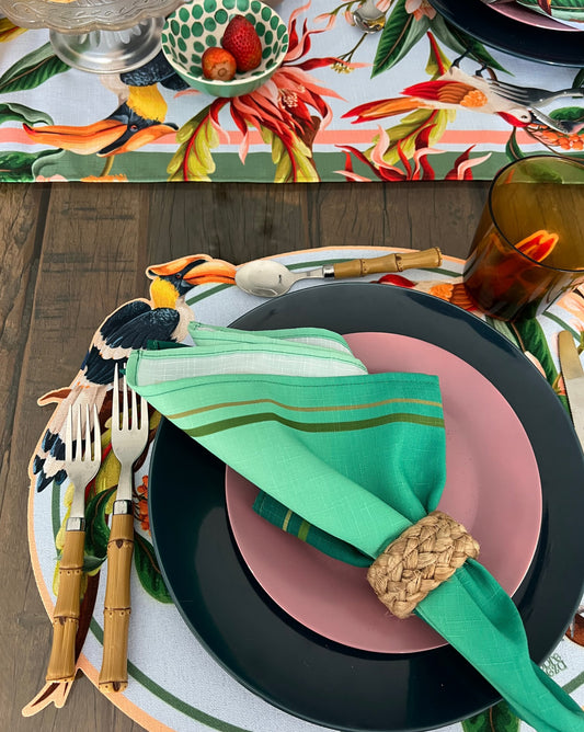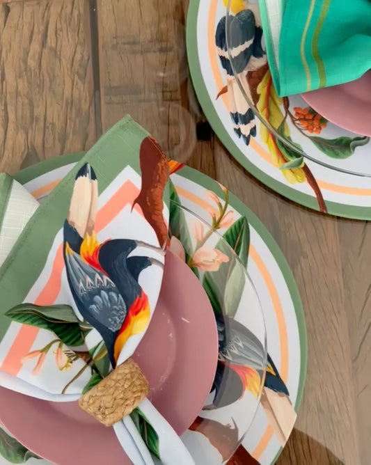 Transform your table into a captivating oasis with our Wild Fabric Charger Covers. Featuring exotic birds and vibrant flowers, these covers infuse your dining experience with untamed beauty. Meticulously crafted for durability and style, they add a touch of adventure to your table setting. Create a lively and extraordinary ambiance by "dressing up" your charger plates with our Wild Fabric Charger Covers.